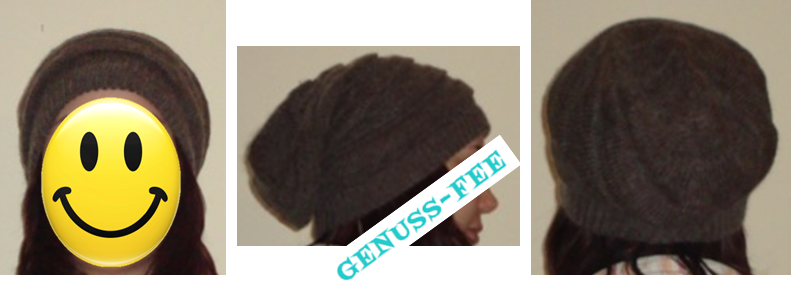 Ich habe mich für die braune Variante entschieden. Im Internet erstrahlt die Mütze in einem kräftigen Dunkelbraun. In Wirklichkeit handelt es sich um ein Mittelbraun mit ein paar helleren Fasern. Mir gefällt zwar diese Farbe auch sehr gut, aber wenn ich im Internet eine dunkelbraune Mütze bestelle, dann möchte ich auch eigentlich eine dunkelbraune Mütze. Naja.