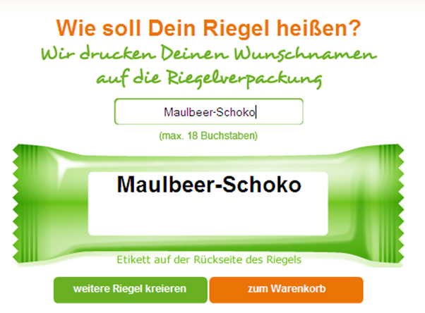 Meinriegel.de finde ich im Allgemeinen eine tolle Idee, da man ganz einfach seinen Riegel mit Wunschzutaten kreieren kann.