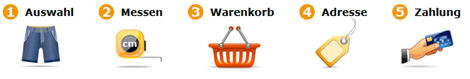 Nachdem die Auswahl für Modell, Stoff/Farbe usw. getroffen wurde, gehts ans Messen. Um zu wissen wie man messen muss, befinden sich neben den Angaben orange Kreise mit einem i drauf. Wenn man mit der Maus über den orangen Kreis fährt, erhält man genaue Infos und Abbildungen wie zu messen ist. Hier ein Beispiel: