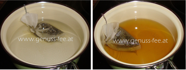 Da 5 l zuviel für zwei Personen sind, habe ich mir etwas von dem Tee in einen Teebeutel für losen Tee gegeben und ihn dann zubereitet.
