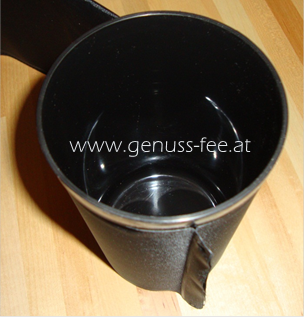 Der Getränkehalter wird mittels aufpumpbarem Luftkissen befestigt.
