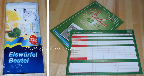 In der Box befinden sich außerdem noch Eiswürfelbeutel zur Kühlung der Biere und eine Bier-Verkostungsanleitung: