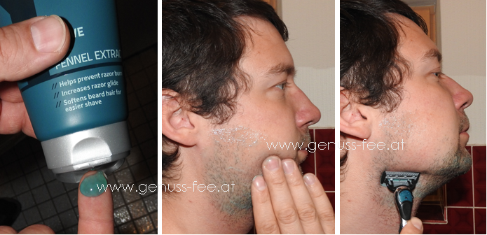 Das durchsichtige Rasiergel mit Fenchelsamenextrakt lässt sich sehr gut auf die Haut auftragen, verteilen und fühlt sich dabei sehr gut an. Es schäumt NICHT – zunächst etwas ungewohnt, doch irgendwie richtig prakitsch. Man behält den Durchblick, erkennt sofort ob man auch wirklich alle Haare erwischt hat. Zudem gleitet der Rasierer einfach durch die erweichten Haare.