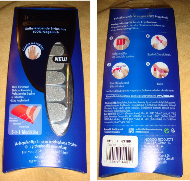 Bin dann auf die Incoco Nagellackstrips gestoßen, die ich mir vor kurzem bei Bipa gekauft habe. Die Nagelsstrips waren im Abverkauf und somit um 2 Euro zu kaufen. Ich hatte die Wahl zwischen rot, schwarz und silber glitter. Ich habe die Farbe silber glitter gewählt.