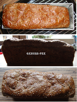 Zur Konsistenz, nun ja es ist ziemlich luftig und wie man auf dem letzten Bild sieht, lässt sich das Brot stark zusammendrücken und danach nimmt es wieder die normale Form an (irgendwie wie Gummi).