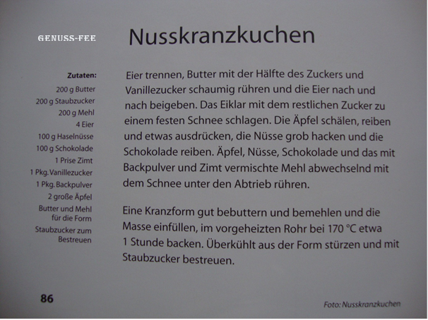 Ich habe mich zu Beginn gleich mal für den Nusskranzkuchen entschieden: